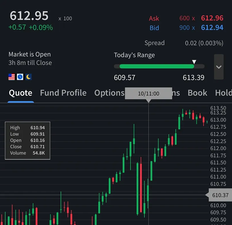 Trade stocks, options, futures, currencies, bonds, and funds across the globe.